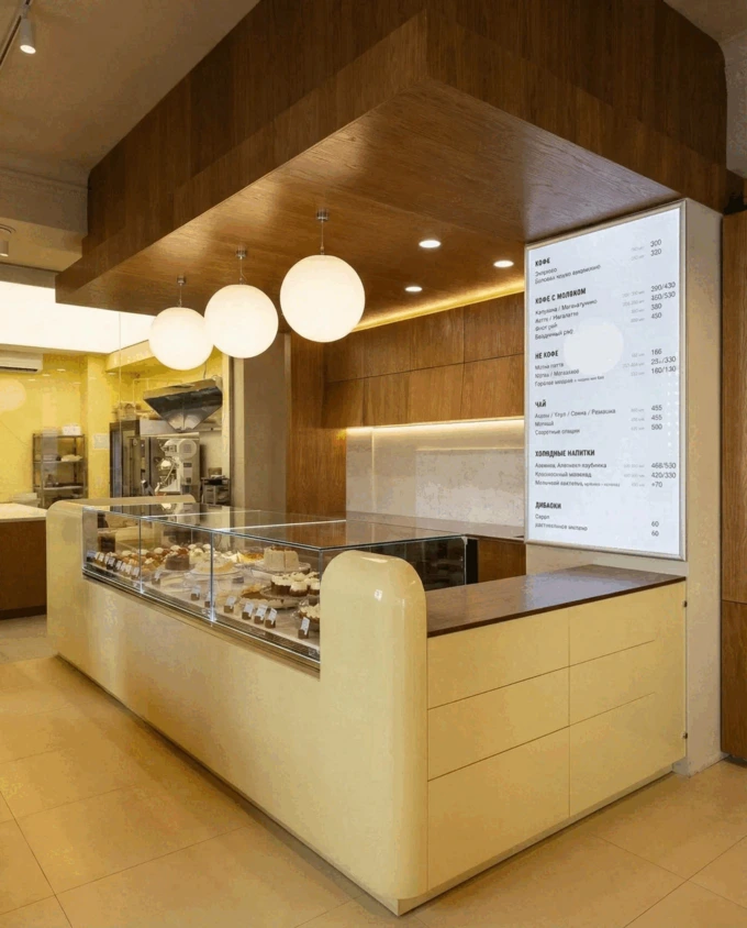 Пространство отремонтировали и переосмыслили под новый формат кондитерской. В меню представлено около 30 позиций десертов от бренд-шефа Кристины Абрамовой. При этом здесь можно полноценно позавтракать, пообедать или поужинать.