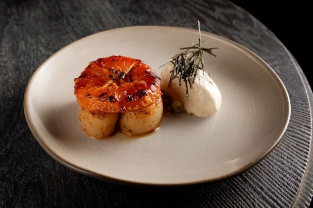 Гребешок с икрой морского ежа, морковным пармантье и апельсином + коктейль — 2 200 рублей