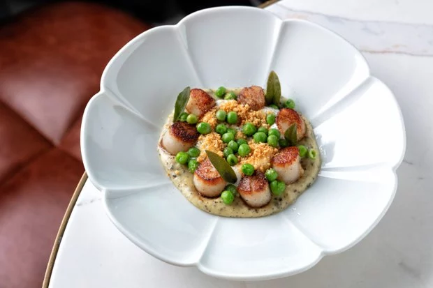 Гребешок с картофелем, молодым горошком и сырным фондю + виски — 2 650 рублей