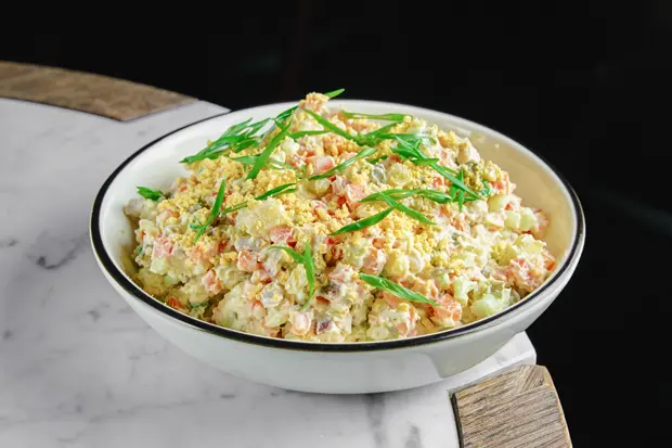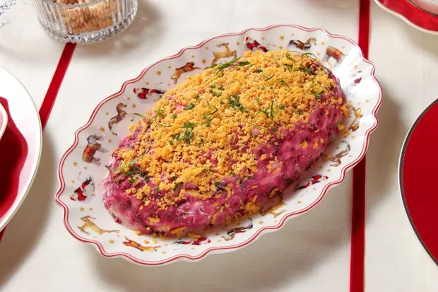 Команда «Огородников» уверена: Новый год — это не про героизм у плиты, а про общий стол без труда. Оливье с докторской колбасой или языком, олюторская селедка под шубой, мимоза с копченой форелью, домашний холодец с хреном и горчицей, утка с пряными яблоками, томленый ягненок, стерлядь с судаком и форелью — эти блюда с узнаваемыми вкусами из детства предлагают в ресторане русской кухни. Да, еще рыбный пирог со шпинатом и шоколадный кекс с пьяной вишней на десерт. Предзаказ просят делать за три дня — до 31 декабря.