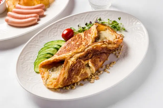 Омлет с воронежским окороком и выдержанным сыром — 500 рублей