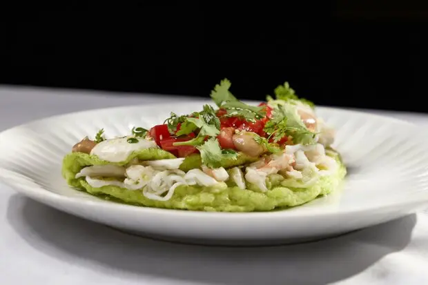 Зеленый борано с крабом, томатной сальсой и кахой по-азиатски — 1 000 рублей