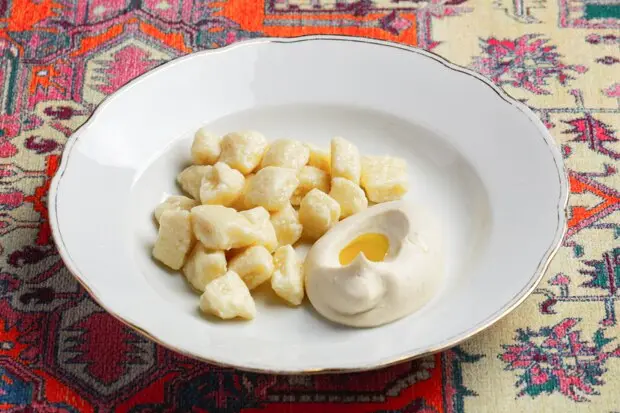 Без пряностей, но не менее прекрасны и сладкие блюда — плотные ленивые вареники с кремом и оливковым маслом в качестве акцента и неожиданное сочетание томленых яблок с нутеллой на бриоши.