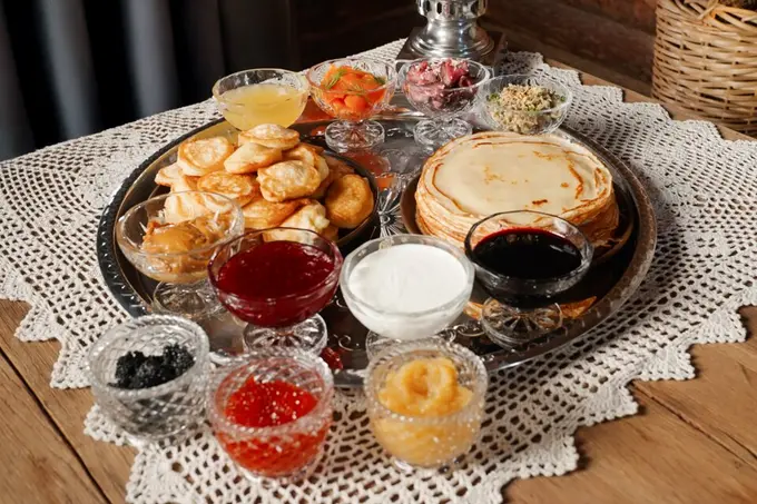 В ресторане при банном комплексе Siberia приглашают отметить Масленицу с размахом. Для компаний здесь представляют сет «Сибирская Масленица» — формат застолья, рассчитанный на совместный праздник за одним столом. Сет включает 30 тонких блинов и 30 пышных оладий; плюс классические сладкие и соленые добавки: от домашнего варенья и меда до форели, ростбифа, груздей и трех видов икры — осетровой, кеты и щучей. В центр стола ставят настоящий самовар. Сет доступен по предварительному заказу.