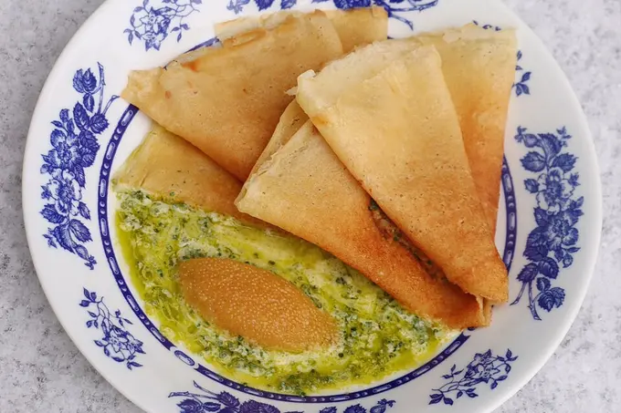 К Масленице шеф Элисо Гочава подготовила шесть блюд по грузинским мотивам. Среди начинок фигурируют белые грибы с трюфельно-сливочным соусом, томленая говядина с сулугуни и сливочно-перечным соусом, лосось с судаком под икорно-сливочным соусом, творог с джемом из айвы и ванильным мацони. В дополнение к грузинским версиям вам подадут дюжину (или полдюжины) свежеиспеченных блинов с различными топингами на выбор: сгущенкой, вареньем из винограда, медом, лососем и красной икрой.