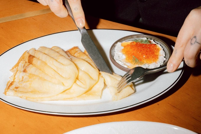 К Масленице в ресторане запустили специальное меню, придуманное владельцем проекта Алексеем Алексеевым. В праздничную подборку вошли блины с форелью, кремом фета и вялеными томатами, блины с бычьими хвостами, грибным кремом и соусом жу, блины с мортаделлой, огурцом и соусом саке, а также более классические варианты — со сметаной и вареньем из лесных ягод. Завершает список блюд сладкая версия блинов с банановым кремом, лимонным курдом и крошкой белого шоколада.