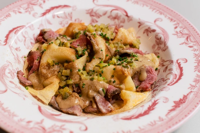 К Масленице в ресторане подготовили специальное меню с сытными и сладкими вариантами. В него вошли блины с куриным рийетом и копченой сметаной, блины с ростбифом, грибным соусом и солеными огурцами, а также со слабосоленым лососем и сливочным кремом. На сладкое предлагают блинчики с карамелью, ванильным мороженым и бобами тонка. Если соберетесь компанией, берите дюжину блинов с топингами на выбор. В сладких вариантах значатся крем из вареной сгущенки, карамель и варенье из айвы и вишни. Традиционная версия подразумевает два вида икры (красную и щучью), лосось, ростбиф и сметану.