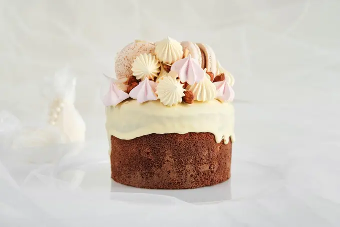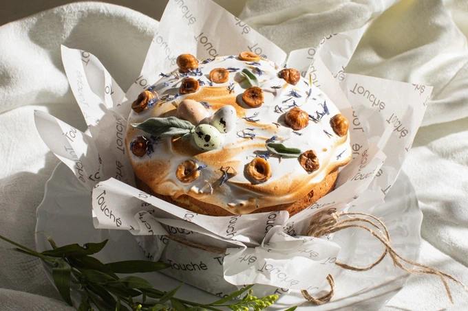 К празднику Великой Пасхи в Touché подготовили кулич из фермерского творога с маком и кисленьким сюрпризом: за лаконичным дизайном меренговой шапочки скрывается начинка из насыщенного лимонно-лаймового курда.