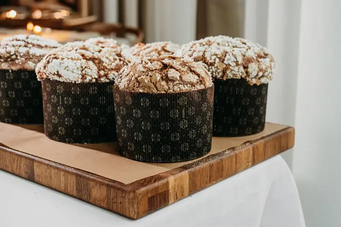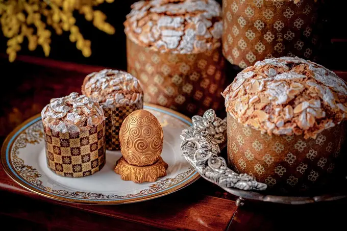 Бренд-шеф Джузеппе Дави к светлому празднику готовит панеттоне по фирменному рецепту на закваске «Левито Мадре», которую он вырастил еще в 2020 году! Выпечка представлена в двух вариантах: с глазурью из миндаля или без нее, но обе — с цитрусовым ароматом и цукатами.
