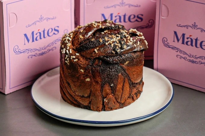Принцип простой и понятной кухни находит отражение не только в меню ресторана, но и в праздничной сдобе. В основе — тесто бриошь с длительной расстойкой, вместо обычного сахара используется тростниковый, а внутри — апельсиновые цукаты, вяленая клюква и белый изюм джамбо, вымоченные в роме, а также цедра апельсина и лимона. Сверху — хрустящий макронад из фундука и яичных белков вместо привычной глазури.
