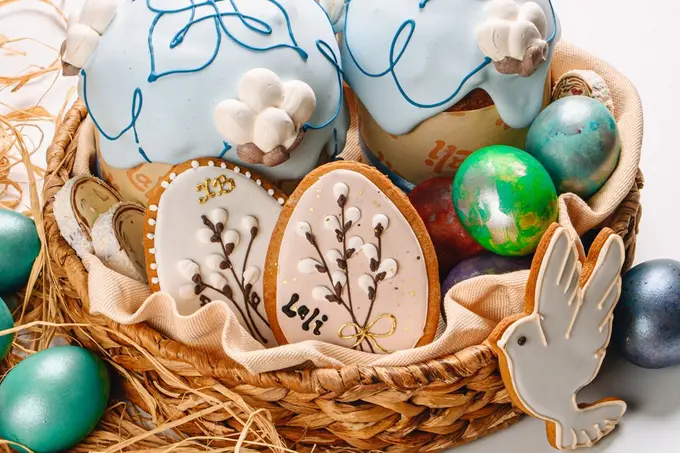 Также в ресторане пекут имбирные пряники с сахарной глазурью в форме главных символов праздника — кроликов, птиц и пасхальных яиц.