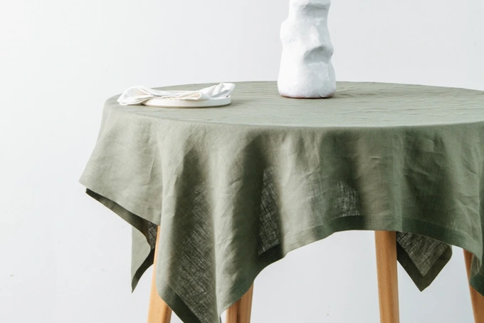 Главное — чистота линий: откажитесь от многоцветной вышивки, люрекса и кружева в пользу простого края. Например, нарочито необработанный срез или легкая льняная бахрома подчеркнут натуральность ткани, не отвлекая внимания от самой сервировки.