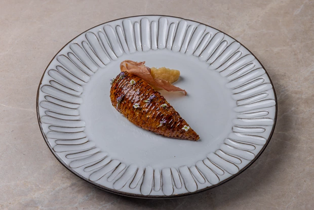 На смену «Бабочке» приходит «Луна» — второй гастрономический сет ресторана «Aфина» о локальных продуктах, необычных сочетаниях и символике подач. Его авторы — бренд-шеф Дмитрий Денисов и шеф Карен Мамян. Карен готовит амюз буш из абхазского маринованного бамбука с пряным томатом, а Дмитрий выбирает для старта холодноводную карельскую форель, яркий вкус которой усиливает желе из ламинарии. И помня школу известных шефов и наставников Виталия Истомина и Артема Лосева, оба прячут третью миниатюру на дне шкатулки — пате из фуа-гра на золотистом молочном хлебе с вишней и армянским фундуком.