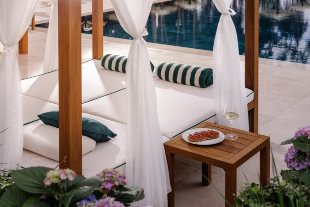 Ресторан у бассейна с просторной террасой дополнит отдых блюдами от бренд-шефа Александра Шубы. Пообедать и поужинать можно будет как внутри, так и на лежаках.