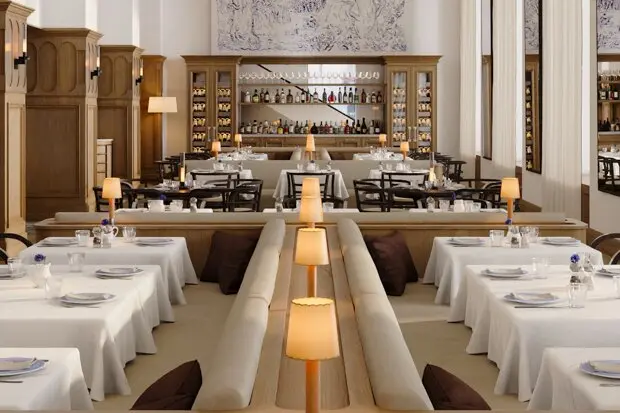 Пельмени начиняют уткой и фуа-гра, слоеный пирог — бужениной и сопровождают мороженым из хрена, в тартар кладут жареные тыквенные семечки, клюкву и чернослив, к гребешкам добавляют крыжовник, почки готовят с перловкой и пюре из сельдерея. В десертной карте бренд-кондитера Стаса Пауля ищите шоколадный наполеон с еловым вареньем, чизкейк с ромашкой и крутые булочки шу с укропом. В коктейльной карте — напитки с русским духом, например «Сибирская звезда» из настойки на полбе с облепихой или «Еловый аперитив» с сосновым ликером, лавандой и березовым соком. В октябре в ресторане появятся завтраки, например обещают жареную колбасу с яйцами, трюфелем и медом. Плюс свежий хлеб и выпечка из собственной пекарни, которая уже работает на втором этаже.