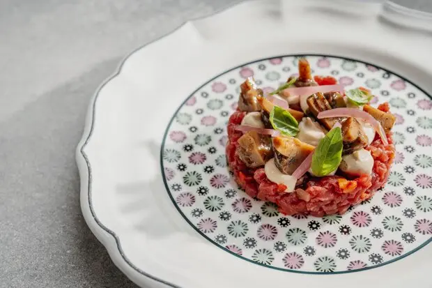 Тартар из говядины с маринованными шампиньонами — 1 350 рублей