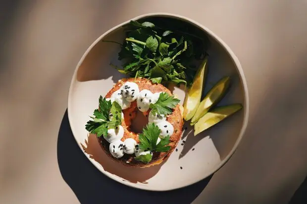 Протеиновый бейгл, скрембл, салат — 890 рублей