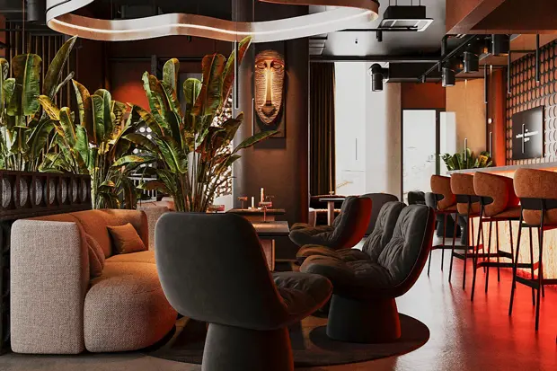 На Шаболовке открылся «Лаву» — рестобар, объединяющий три направления: кальяны, кухню и бар. Кальяны с плотным дымом и авторскими миксами, основательная кухня от супов до стейков, бар с авторскими коктейлями и настойками. В интерьере мягкий свет, бархатная мебель, плавные линии, большие живые растения — отсылка к элегантному диско 70-х, но приглушенному и камерному, в оттенках терракоты и графита, с металлическим блеском деталей.