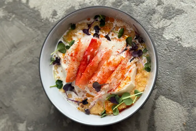 В Regions продолжают гастрономические эксперименты: новый сет шефа Максима Ражева несет в себе вау-подачу и интригу. Идея — пересмотр привычной гастрономической иерархии, когда базовые повседневные продукты работают наравне с деликатесами. Сет стирает границу между «простым» и «дорогим», предлагая неожиданные сочетания и новый взгляд на каждый ингредиент. Название у блюд — аллегорические: «Зарождение идеи» — это ржаная калитка с картофелем и лепестками черного трюфеля, к которой сервируют чай из грибного бульона с сусальным золотом, «Игра с восприятием» — соленая красная рыба, которую подают с соусом из зеленых квашеных помидоров и маслом из зеленого лука.
