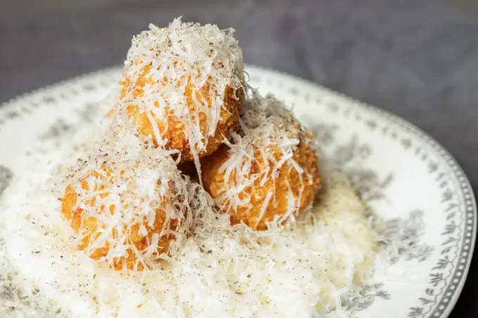 Аранчини «Четыре сыра», соус морне — 650 рублей