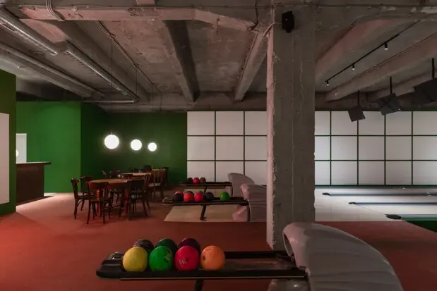 Плавно переходим к шарам побольше. В проекте от команды P2P («Ровесник», «Летник», Skrepka, CAB, Nomer), помимо трех столов для бильярда, есть шесть дорожек для игры в боулинг. При брони дорожки за вами сразу закрепляется столик, где вы можете передохнуть и подкрепиться для следующей игры.