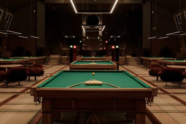В игровой зоне 21 стол для игры в бильярд и пул. Все — от света до кия — выполнено по последним технологиям и с участием профессионалов. Есть отдельные ВИП-комнаты, где можно собраться уединенной компанией, есть столы с применением AI и AR, которые помогают сделать удар более точным.