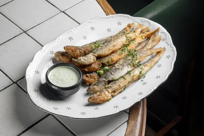 В 22bistro на Казанской улице стартовал сезон корюшки. Готовят в классическом формате — в хрустящей панировке, сервируют с соусом тартар и лимоном. Порция стоит 750 рублей.