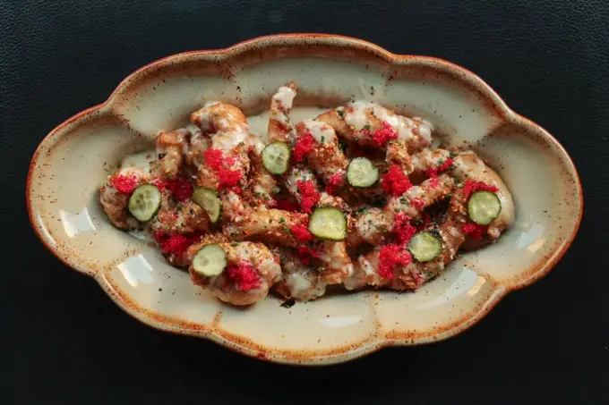 На кухне азиатского ресторана к корюшке подошли по-творчески: рыбу обжаривают во фритюре, подают с рукодельным лимонным соусом (делают на основе свежих плодов). Блюдо дополняют красной икрой тобико и маринованными огурчиками. За порцию просят 1 400 рублей.