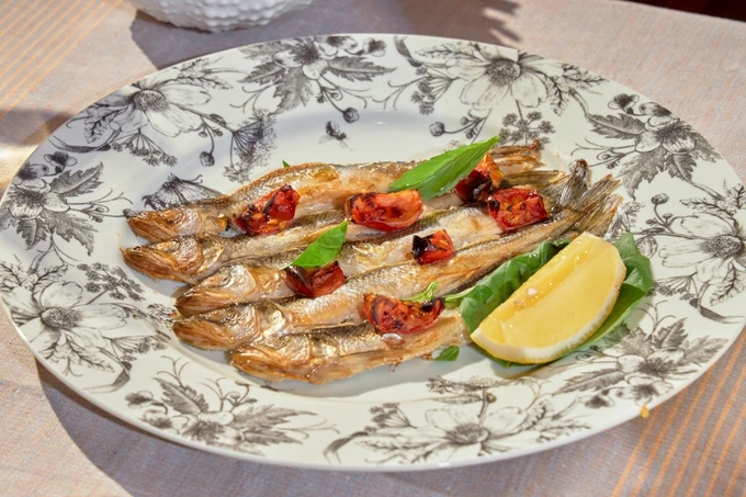 Свежую сезонную рыбу в итальянском ресторане обжаривают на сковороде до золотистого цвета. Подают с долькой лимона. Порция стоит 2 200 рублей.