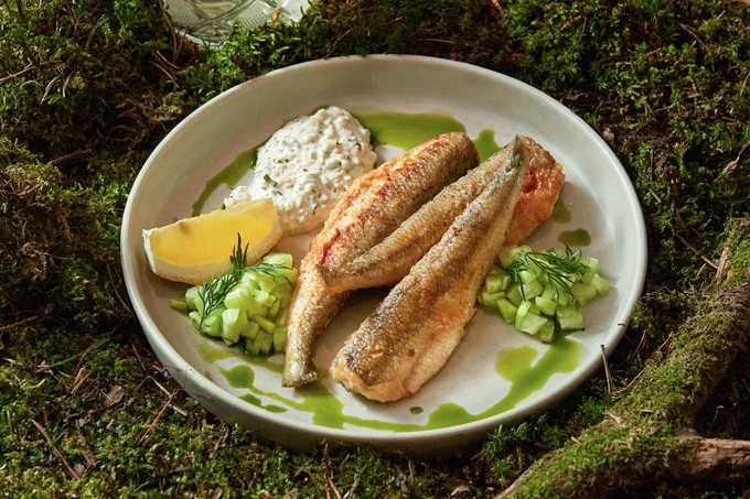 В ресторане «Тепло» сезонную рыбу жарят и подают с французским соусом ремулад — на основе майонеза с горчицей и маринованными огурцами.