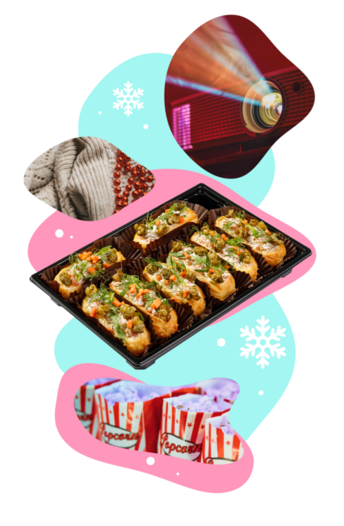Из-за времени, которое вы потратите на просмотр кино, можно не переживать. Вам не придется ничего готовить на праздники — курьеры уже готовы везти вам мини-эклеры с лососем из Ozon fresh.