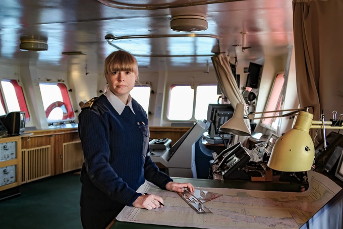 Марина Старовойтова работала в морском флоте более 20 лет — сначала дневальной на атомном контейнеровозе «Советский Союз», а также на торговых судах. После получения диплома старшего помощника капитана заняла должность на атомоходе «Ямал», а теперь возглавит экипаж и судно.