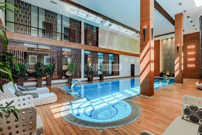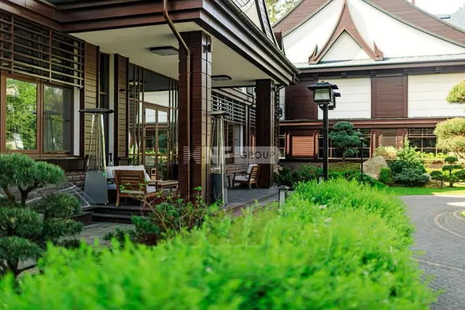Здание площадью 1 885 квадратных метров идет в комплекте с дорогой мебелью, антиквариатом, современной техникой и системой «умный дом». Также в доме есть спа-зона с бассейном и сауной, зимний сад, терраса с зоной отдыха, библиотека, постирочная, семь спален, гостиная, гараж, кухня со столовой.
