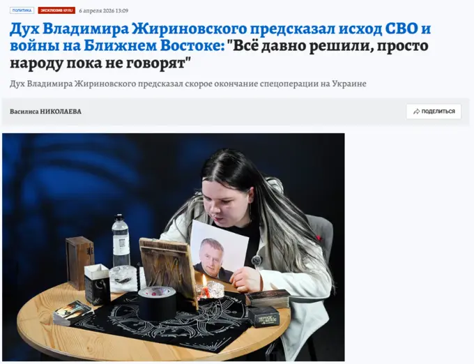 Газета «Комсомольская правда» 6 апреля выпустила интервью с умершим политиком Владимиром Жириновским. Авторы статьи утверждают, что главный редактор просил узнать у бывшего главы ЛДПР, когда закончится спецоперация, война Ирана и США и ответы на другие вопросы.