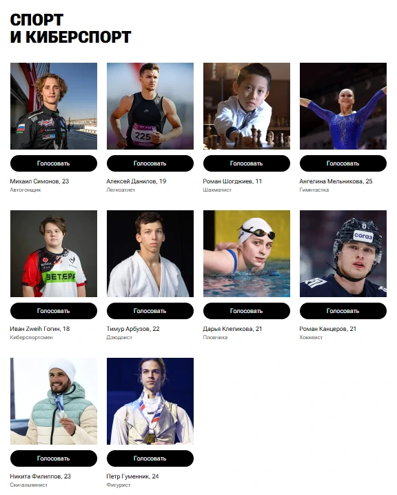 Среди спортсменов и киберспортсменов — олимпийская чемпионка по спортивной гимнастике Ангелина Мельникова и фигурист Петр Гуменник, участник Олимпиады, а также 11-летний шахматист Роман Шогджиев.