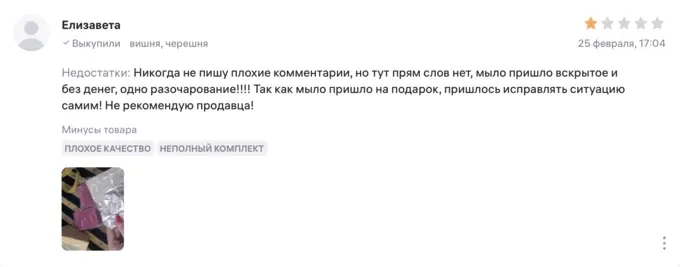 В среднем такое мыло стоит около 300 рублей. Выигрыш может составить от 50 до 5 тысяч, но судя по отзывам, большинство покупателей находят в мыле купюры номиналом 50 рублей. Также встречаются отзывы о том, что товар приходит в ПВЗ вскрытым.