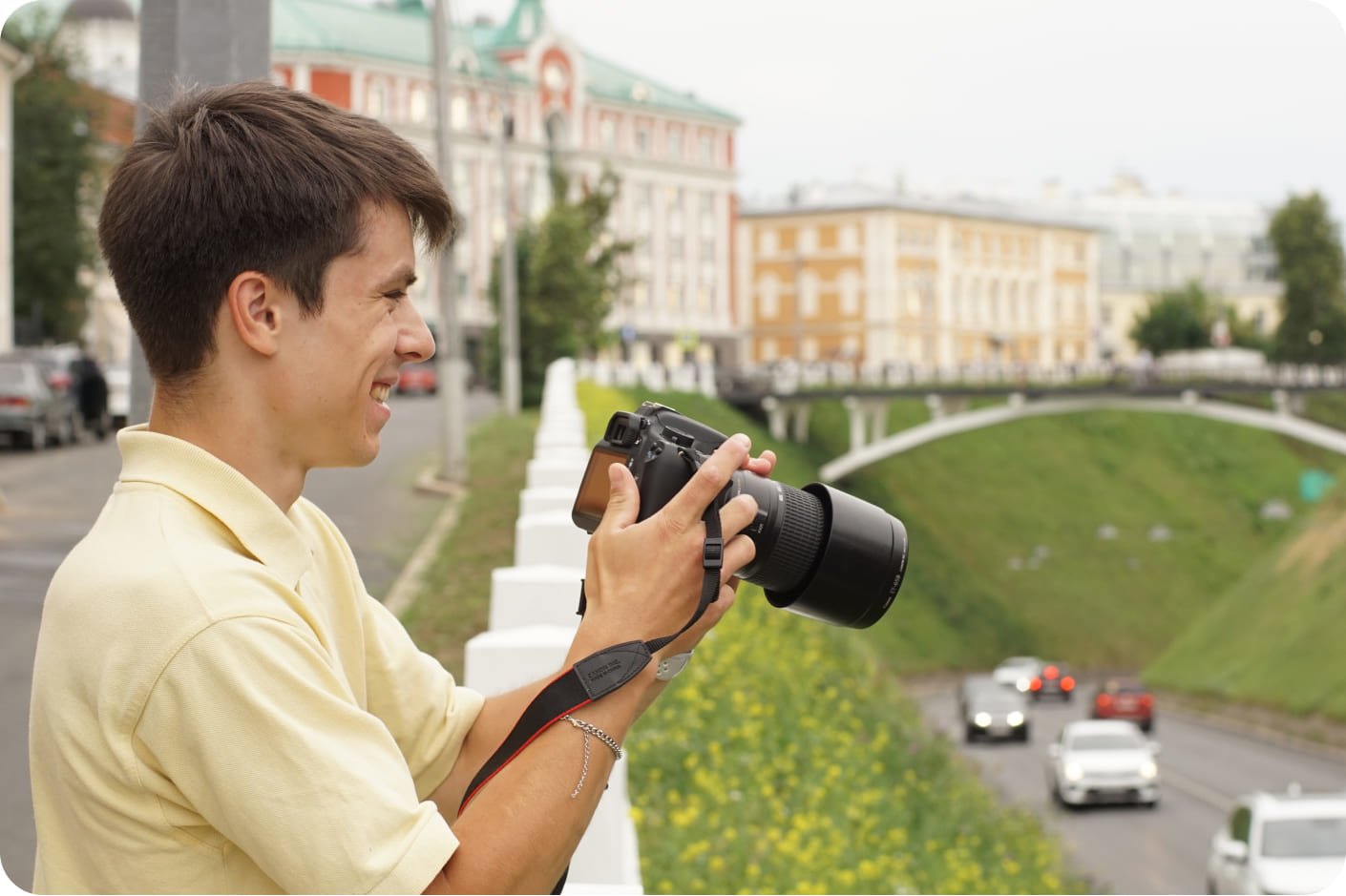 Курьер с фотоаппаратом Какое-то время назад я познакомился с девушкой, благодаря которой заинтересовался фотографией. Сейчас мы с ней уже не общаемся, а интерес к съемке остался. В основном я снимаю пейзажи, но не каждый день — жду удачного настроения и погоды. Для меня это в первую очередь хобби, я не задумываюсь о том, чтобы как-то на фотографии зарабатывать. Правда, был один случай: женщина увидела меня с фотоаппаратом и попросила сделать ей фотосессию. Договорились встретиться через три дня на набережной. Я очень волновался, боялся, что не справлюсь и человек не получит то, чего хотел. Но в итоге она осталась довольна и даже заплатила за съемку.
