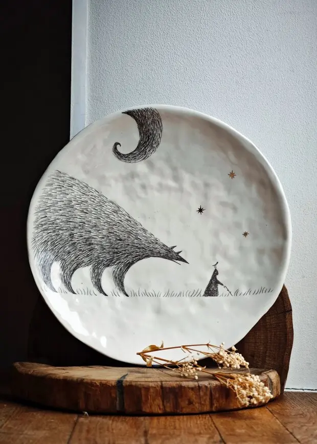 Керамика бренда выходит за рамки утилитарности, превращаясь в артефакты, наполняющие повседневность смыслом и теплом. Персонажи Алены постоянно меняются: из андрогинных странников они превращаются в насекомых, ангелов, мифических существ и блуждающие звезды, продолжая свои странствия от серии к серии.