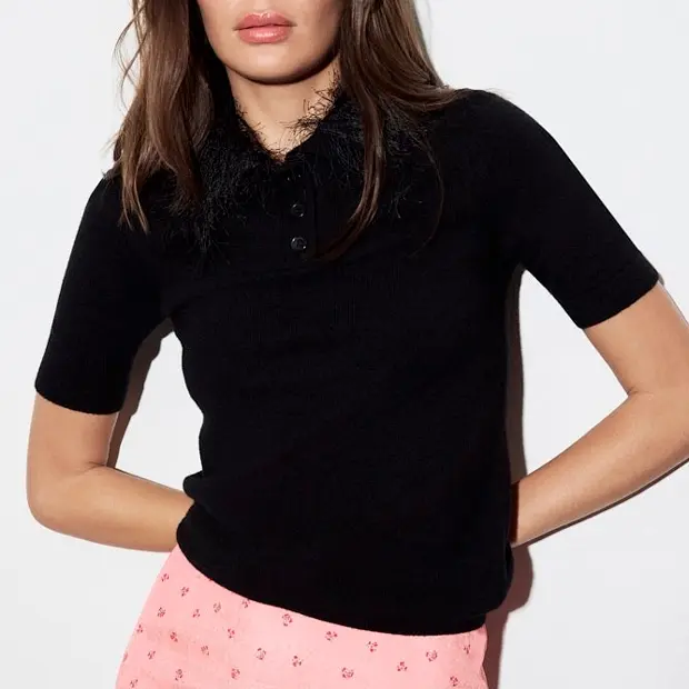 Однозначным хитом в праздничной коллекции Ostin обещает стать золотистая юбка-дождик — похожую можно найти у Choux, но кратно дороже. В дополнение к блестящему низу можно купить бархатный топ или пушистый кардиган с коротким рукавом. Еще одна находка в линейке — перья: например, манжеты с перьями или крупные серьги с ними.