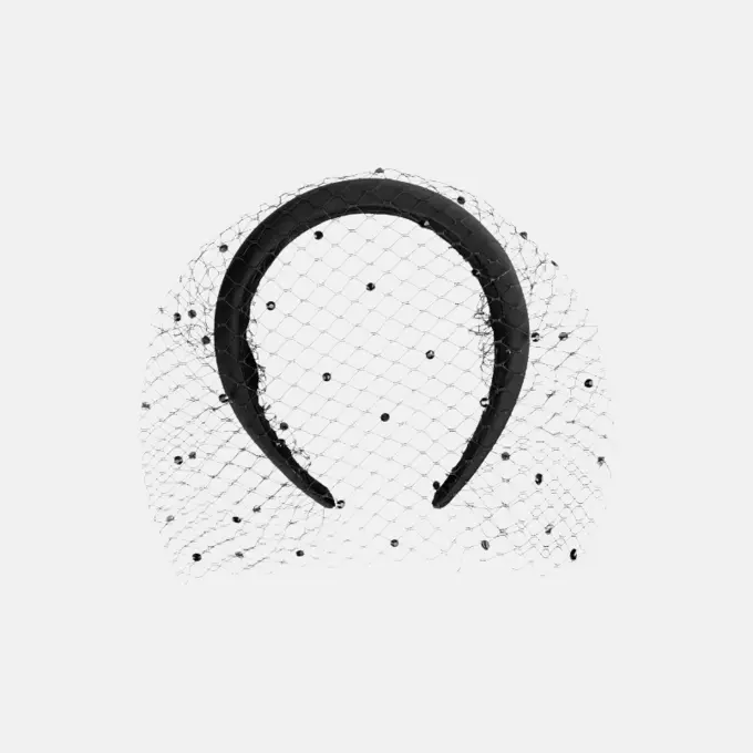 В вечерней коллекции нашлось место всем атрибутам роскошного максимума: атласным платьям со сборками, перьям, кружеву и стразам. Симпатично выглядит комбо из кремового жакета и брюк-алладинов, иронично — галстук из пайеток, и празднично-универсально — ободок с вуалью.