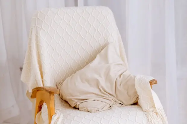 Если бюджет ограничен или времени на доставку уже нет, работайте с тем, что под рукой. Обычные отрезы ткани (габардин, лен или плотный хлопок), купленные в магазине, станут отличной альтернативой. Просто накиньте их на спинки и закрепите сзади булавкой или перевяжите лентой в цвет салфеток.