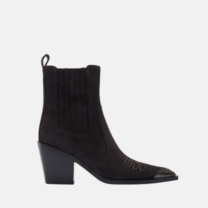 Универсальная обувь на зиму и осень — челси и казаки, которые хорошо смотрятся с джинсами и строгими офисными костюмами, пальто, пуховиками и любой теплой зимней одеждой. Кожа и кожзам — самый очевидный выбор: этим материалам не так страшны лужи, снег и высокая влажность.