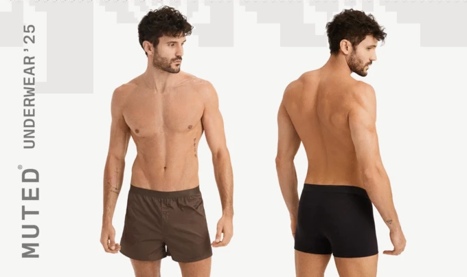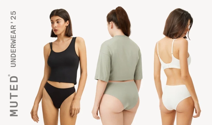 В линейке белья для женщин Muted — бесшовные топы и трусы из эластичного хлопка и полиамида. Также в коллекцию вошел мультифункциональный топ-перевертыш для занятий спортом. Для мужчин вышли базовые модели из модала и хлопка в коричневом, белом и черном цветах.