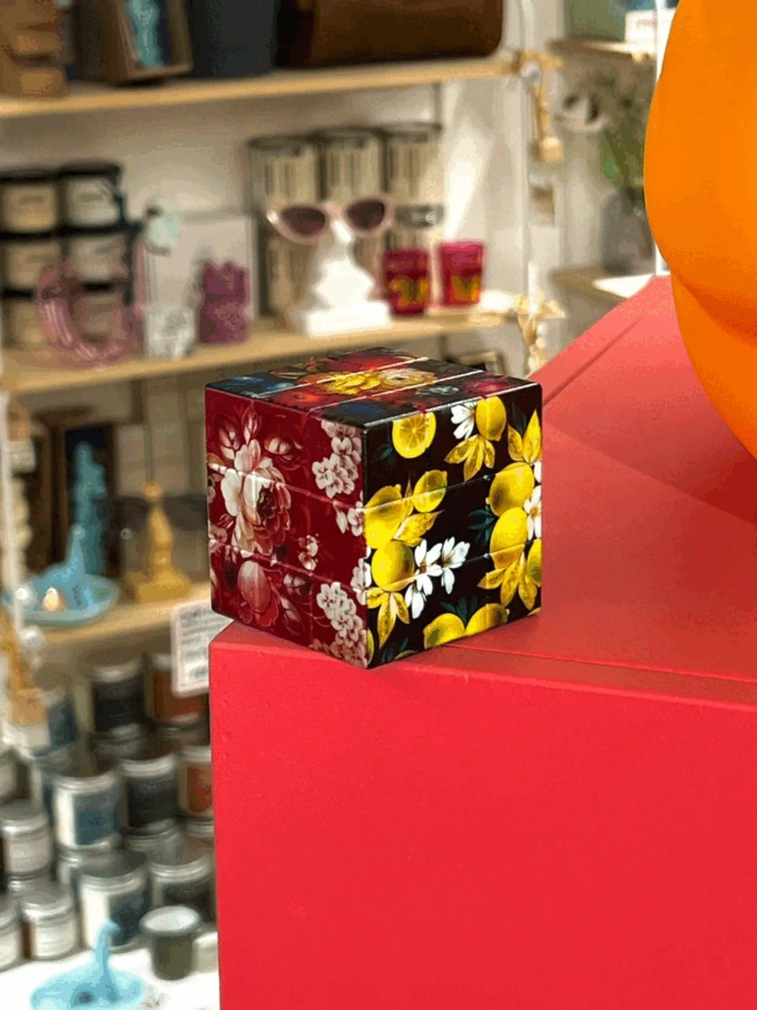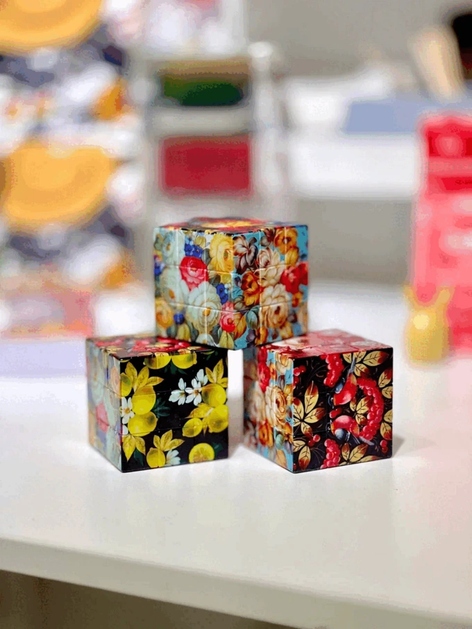 Жостовская фабрика декоративной росписи и бренд Friend Function выпустили совместный проект — кубик Рубика с цветочными композициями по мотивам работ художников фабрики. Чтобы увидеть целостную композицию, ее нужно собрать.