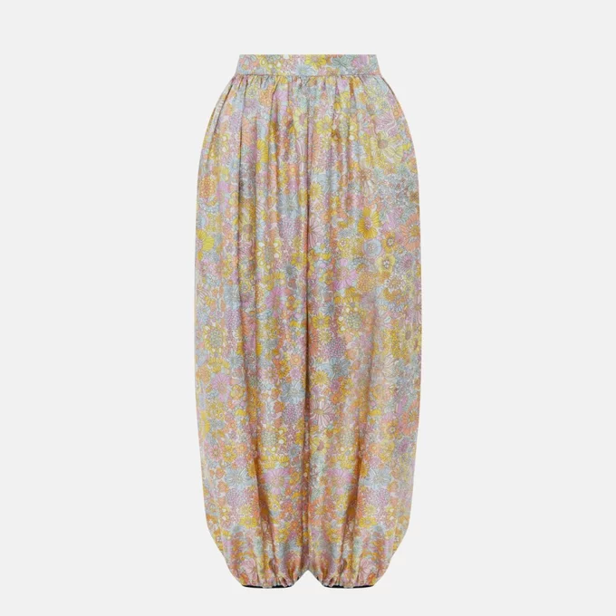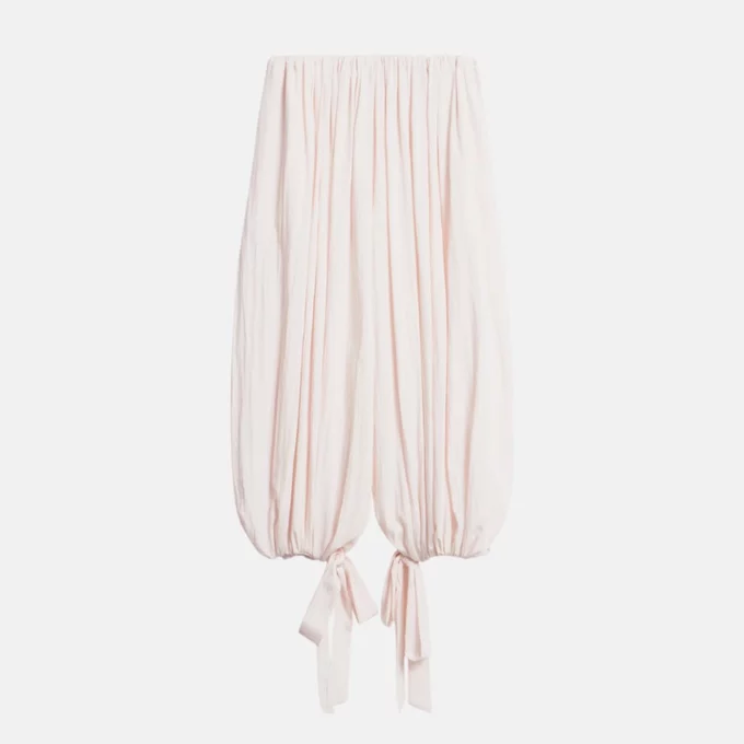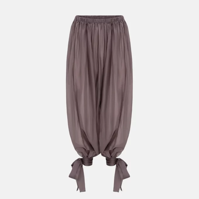 Или самого Аладдина (тут решать исключительно вам). Нравятся такие, как в коллекции Питера Мюлье для Alaïa, Чемены Камали для Chloé (кружево и бохо — наше все) и Алессандро Микеле для Valentino. У локальных марок (к слову, тут есть где разгуляться) сразу обратили внимание на брюки, усыпанные цветами, у Юли Калманович, из шелковой пудровой тафты у Nineteen Four и напоминающие облачко у Belle You.