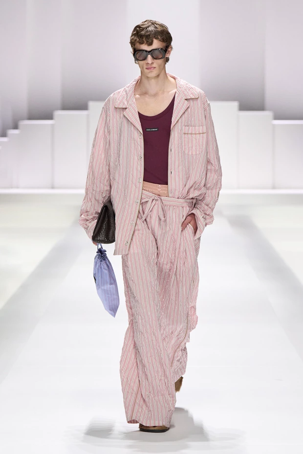 Минувшая мужская Неделя моды сезона весна-лето 2026 в очередной раз укрепила наши взаимоотношения с пижамой и комплектами, которые легко с ней спутать. Сомнений нет — голосуем за нарядные (или в меру) свободного кроя брюки или шорты и рубашки или топы. Влюбились во все возможные вариации (особенно те, что со стеклярусом) у Доменико Дольче и Стефано Габбаны и более спокойные, но не менее красивые авторства Алессандро Сартори для Zegna. К счастью, у локальных производителей пижам много — и они классные.
