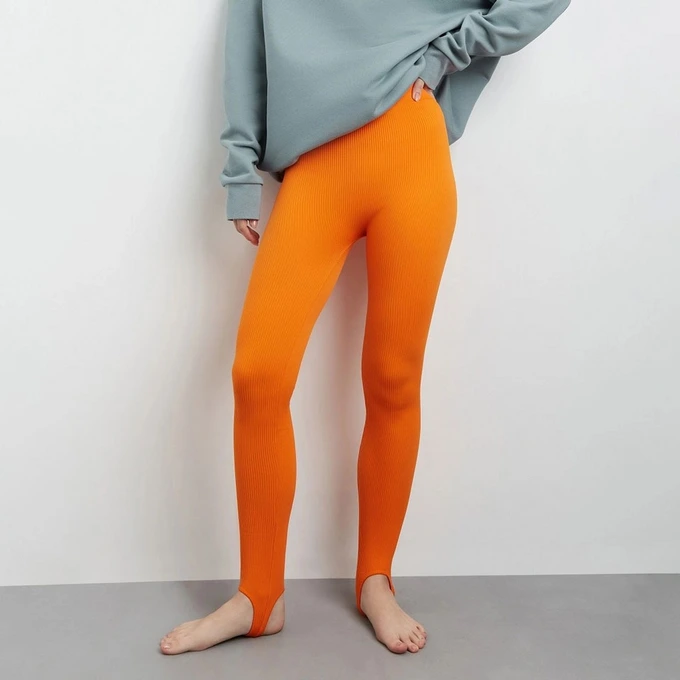 Легинсы со штрипками в рубчик оранжевый
