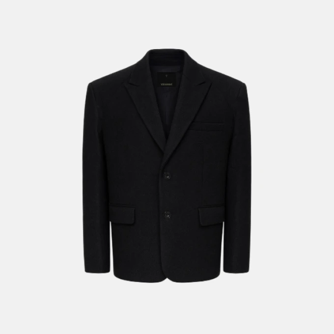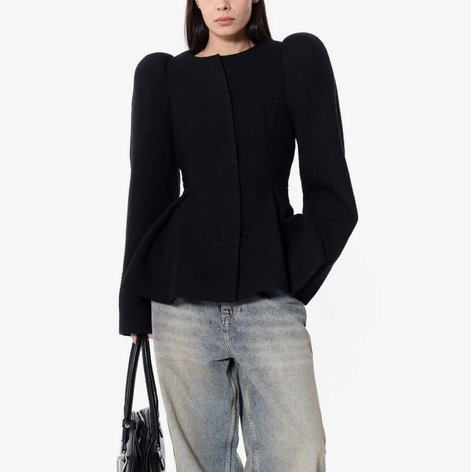 ЖАКЕТ ИЗ ТВИДА С КРУГЛЫМИ ПЛЕЧАМИ ЧЕРНЫЙ