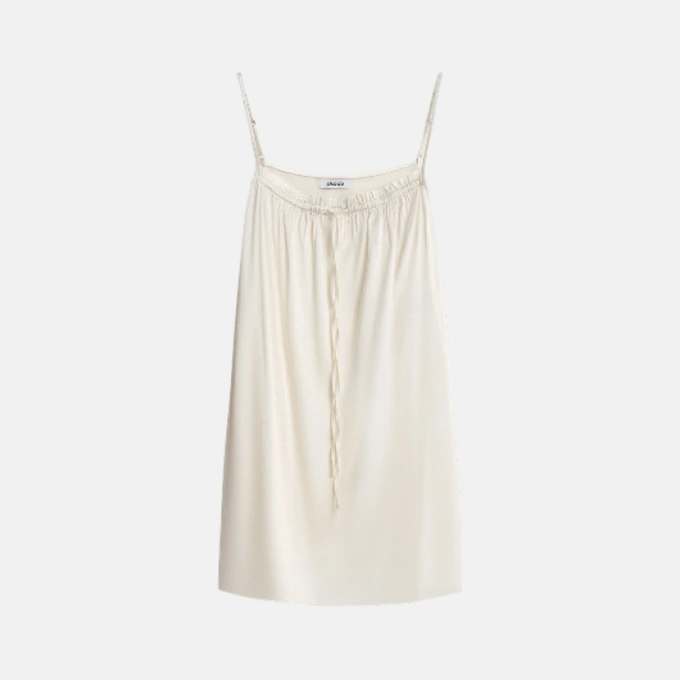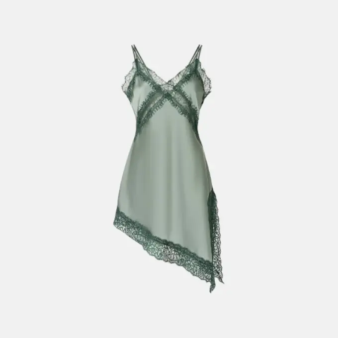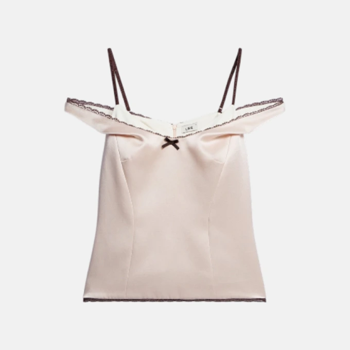 Удлиненный топ из атласа с кружевом