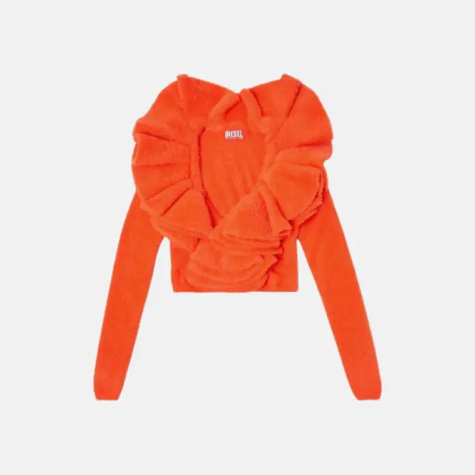 Оранжевый плюшевый укороченный кардиган